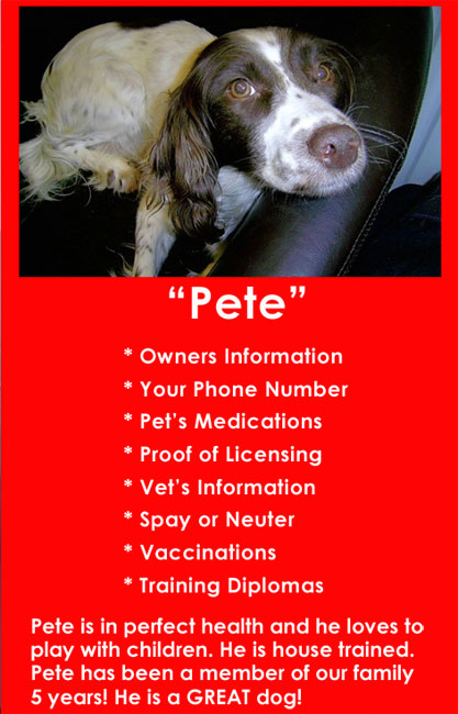 This changes everything in your favor.  We purposely did not put any specific medical issues because not knowing exactly what is wrong may be enough to make any bad guy that picked your pet up drop him off at the next corner.